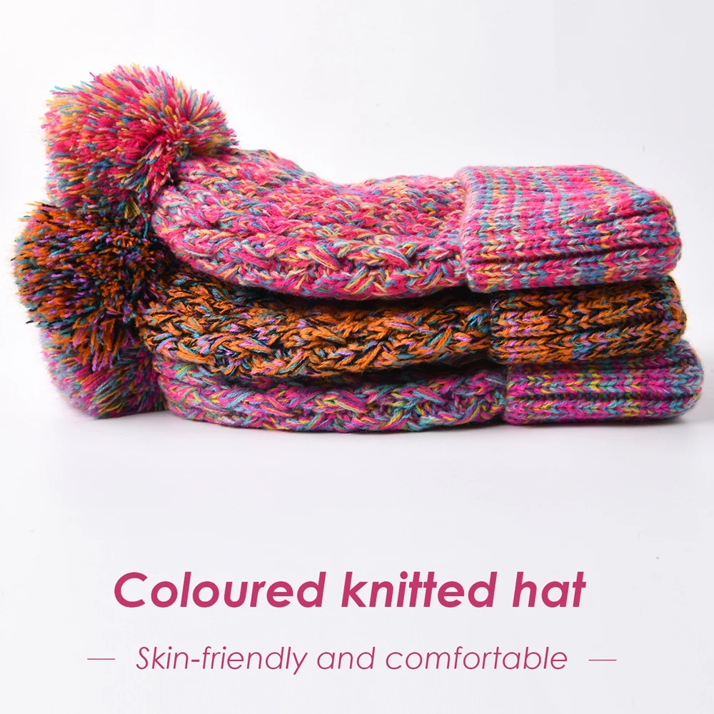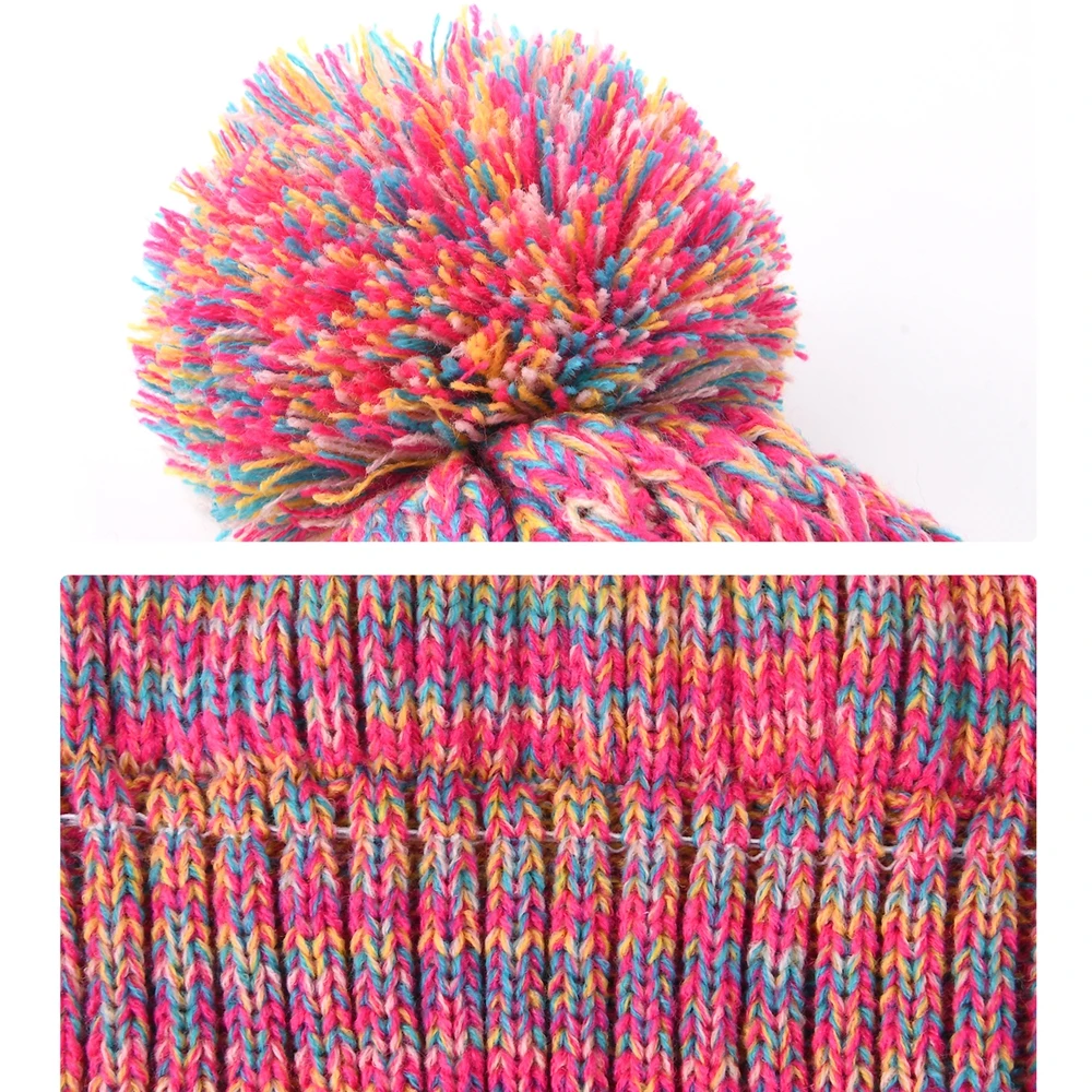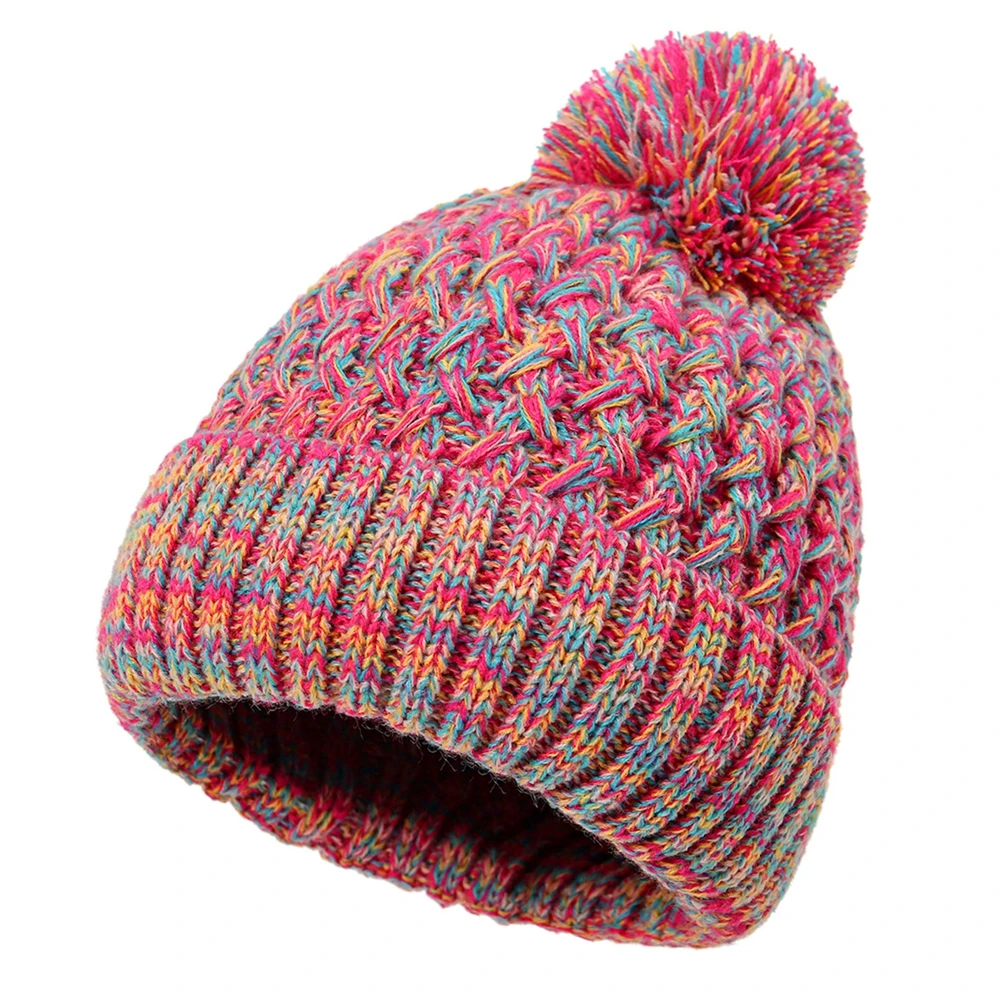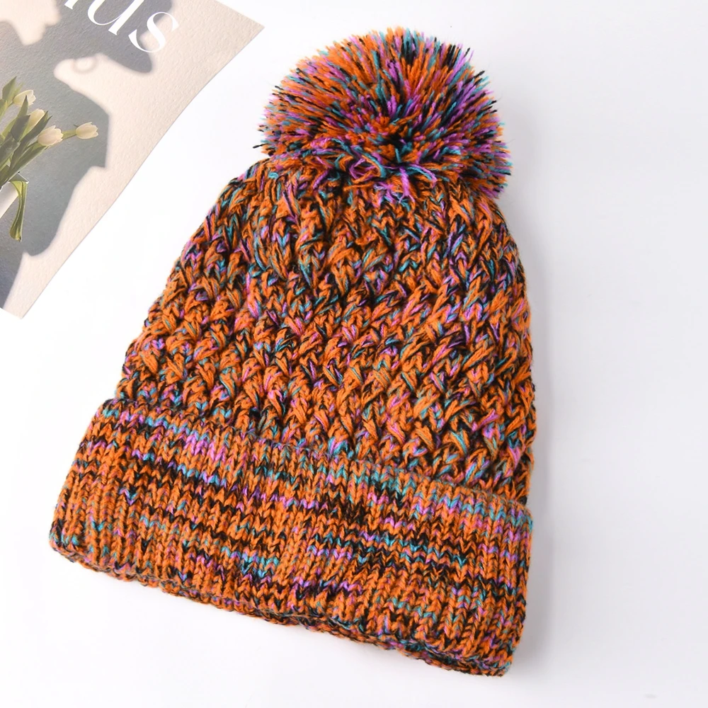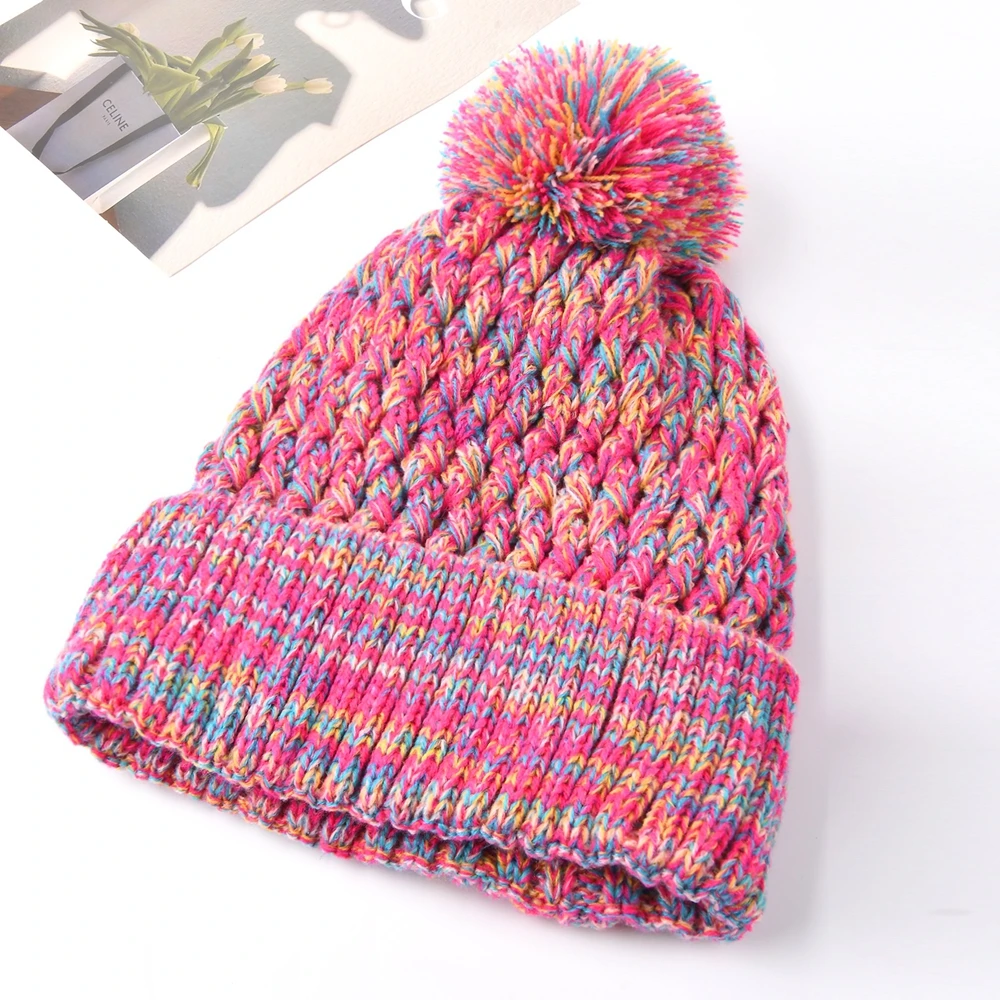 Ladies Single Layer Knitted Hat with Colorful Ball Pom Winter Head Warmth Pineap